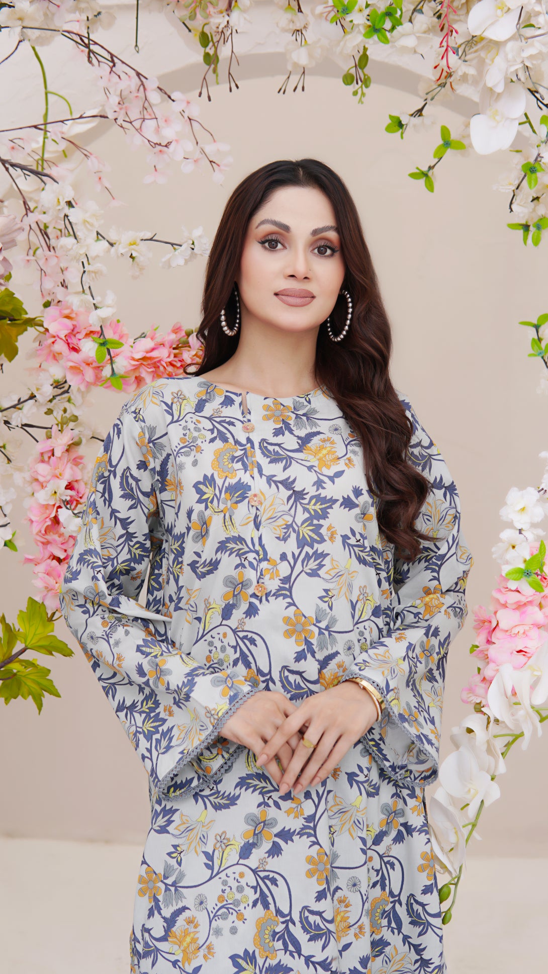 Embrace the season with this traditionally stylish stitched 2 piece cambric suit in with elegant lace work.. This elegant ensemble is paired with straight pants for a graceful look. Perfect for casual wear, it adds a touch of sophistication to your wardrobe.