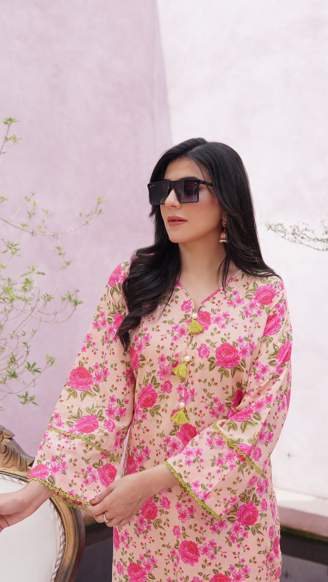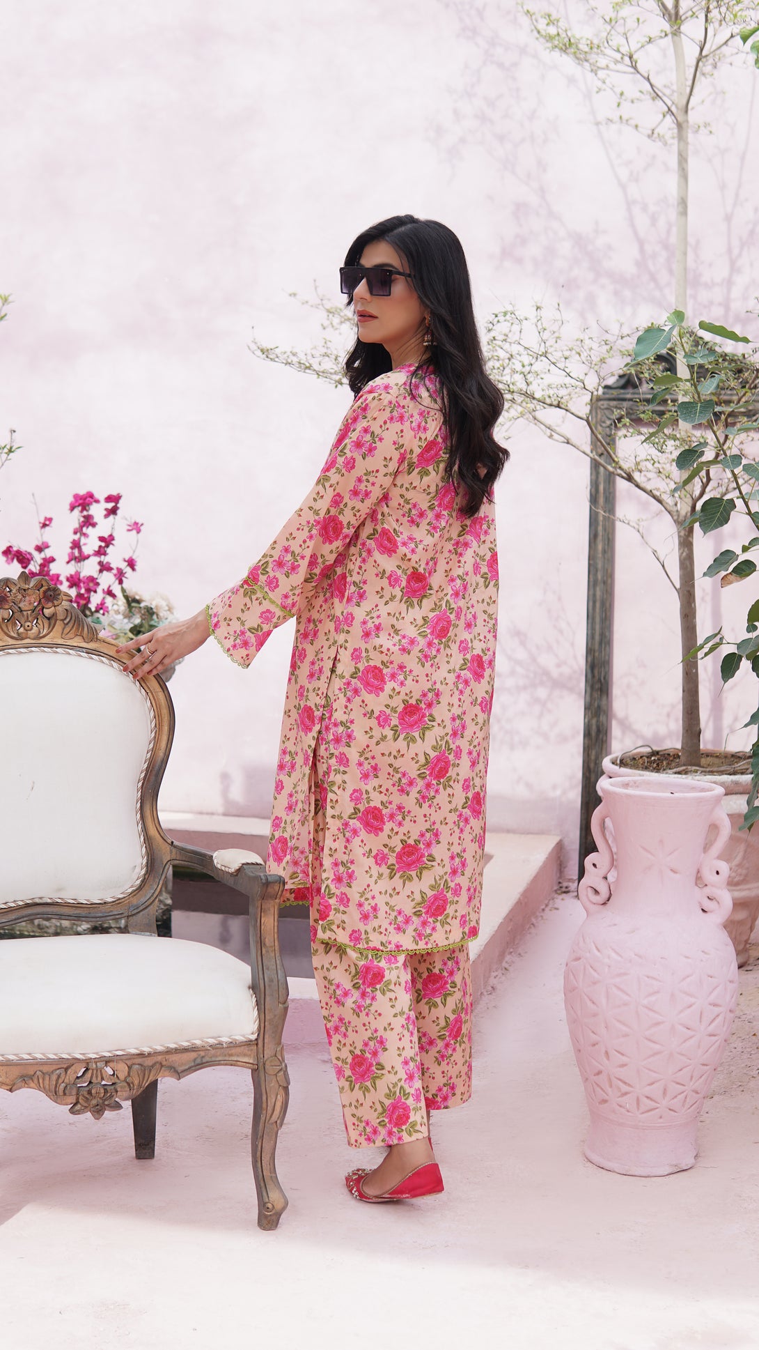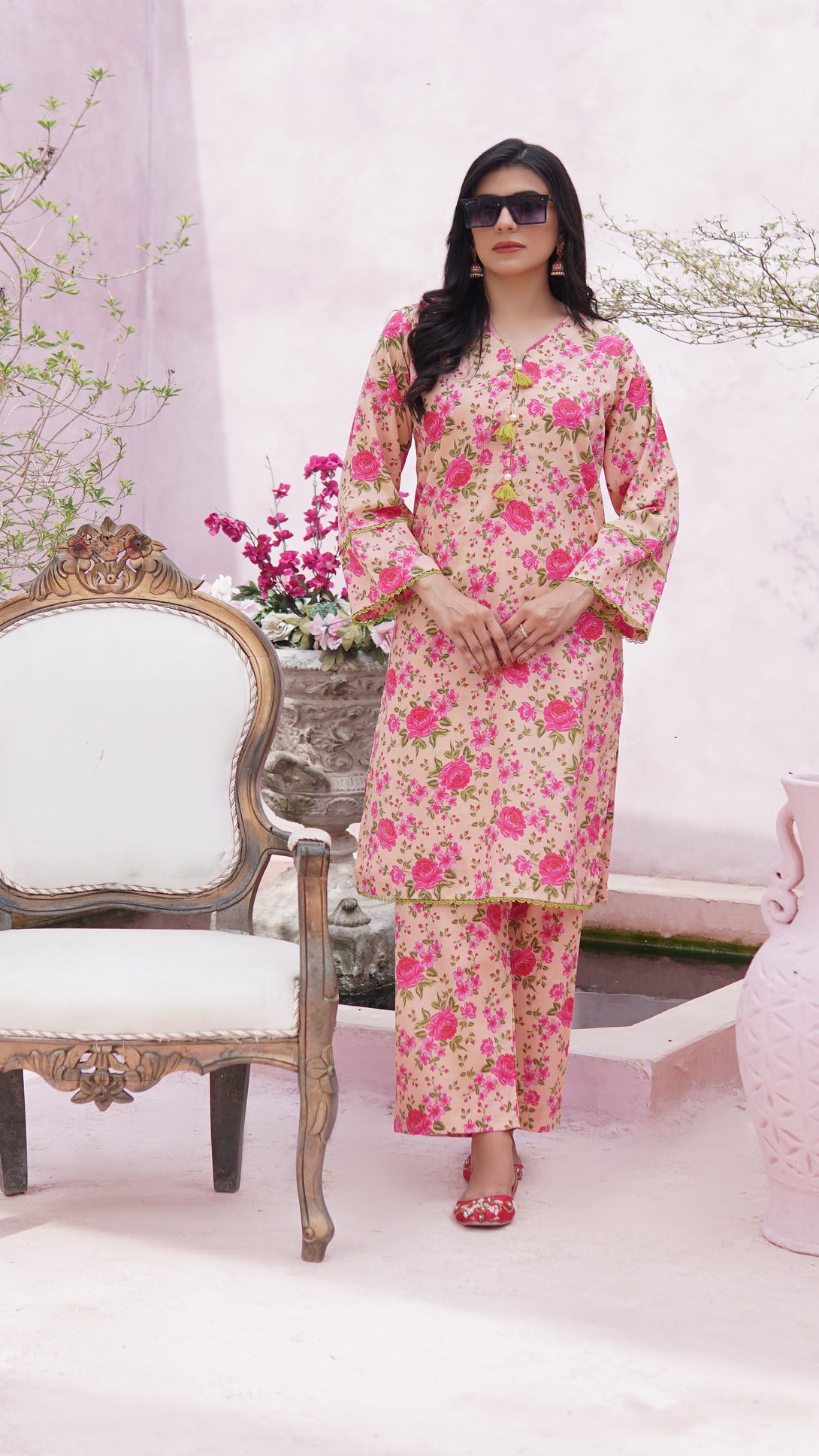 Embrace the season with this traditionally stylish stitched 2 piece cambric suit in with elegant lace work.. This elegant ensemble is paired with straight pants for a graceful look. Perfect for casual wear, it adds a touch of sophistication to your wardrobe.