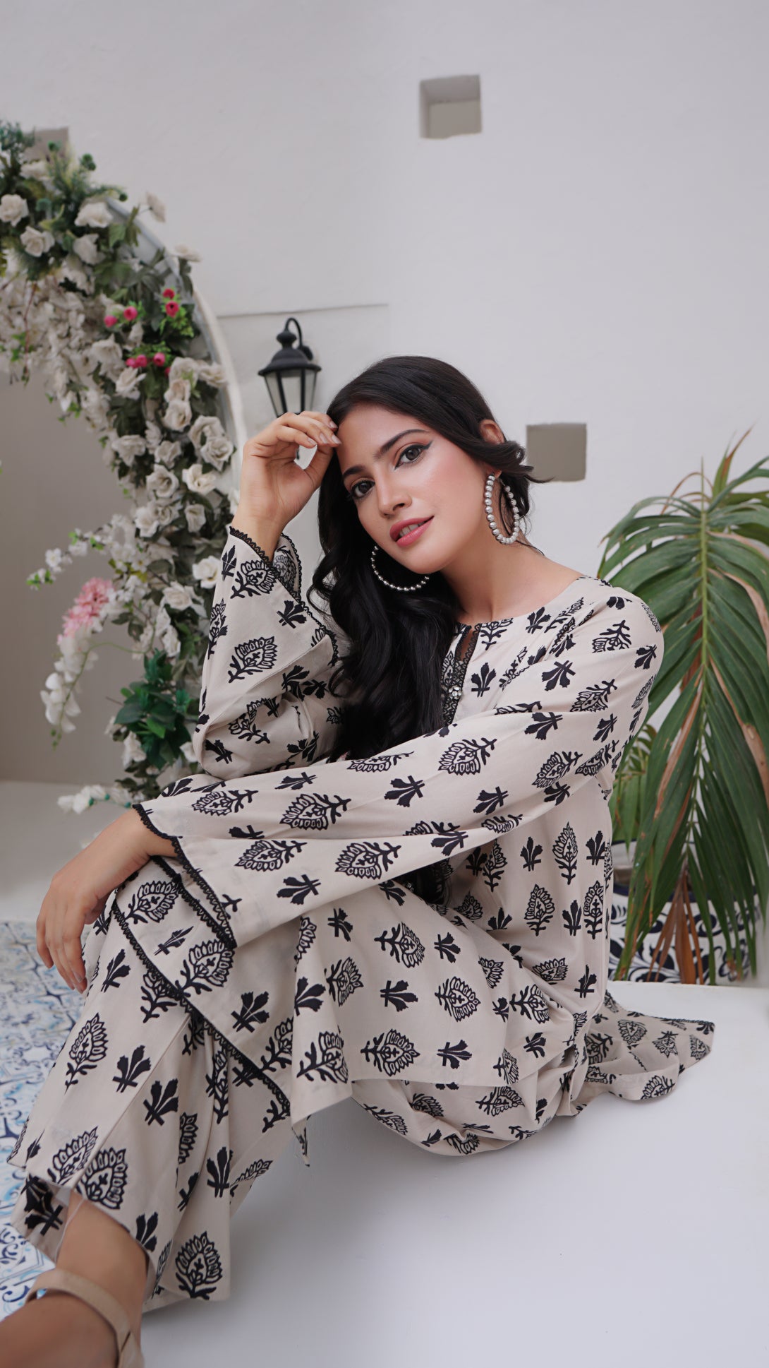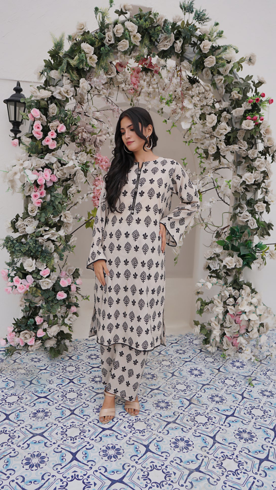 Embrace the season with this traditionally stylish stitched 2 piece cambric suit in with elegant lace work.. This elegant ensemble is paired with straight pants for a graceful look. Perfect for casual wear, it adds a touch of sophistication to your wardrobe.