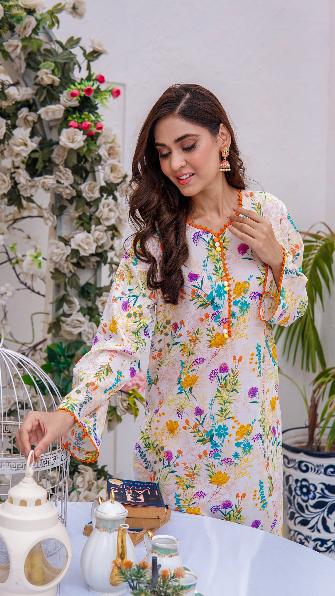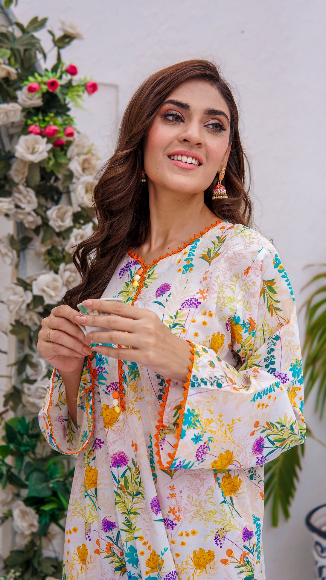 Embrace the season with this traditionally stylish stitched 2 piece cambric suit in with elegant lace work.. This elegant ensemble is paired with straight pants for a graceful look. Perfect for casual wear, it adds a touch of sophistication to your wardrobe.