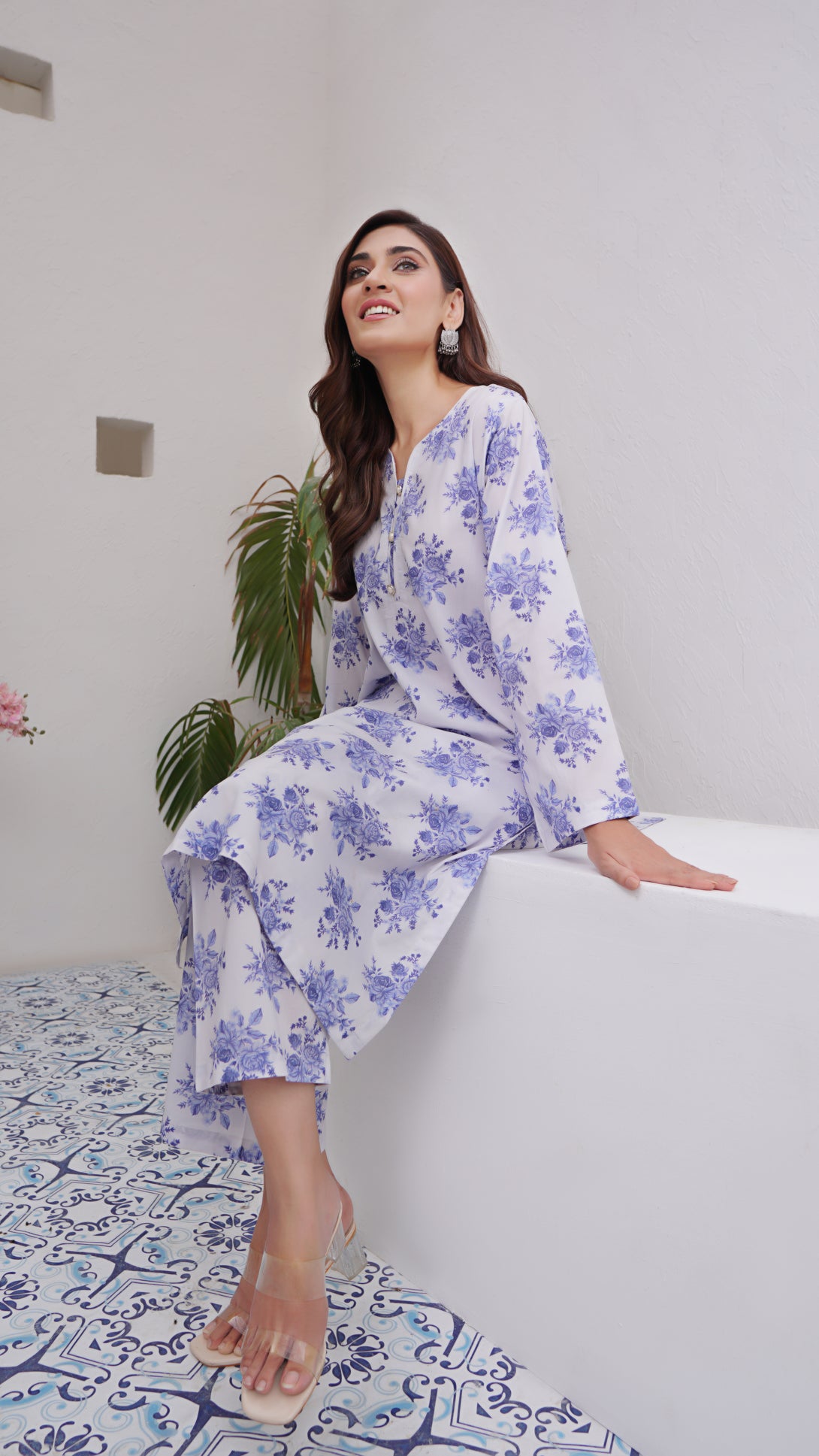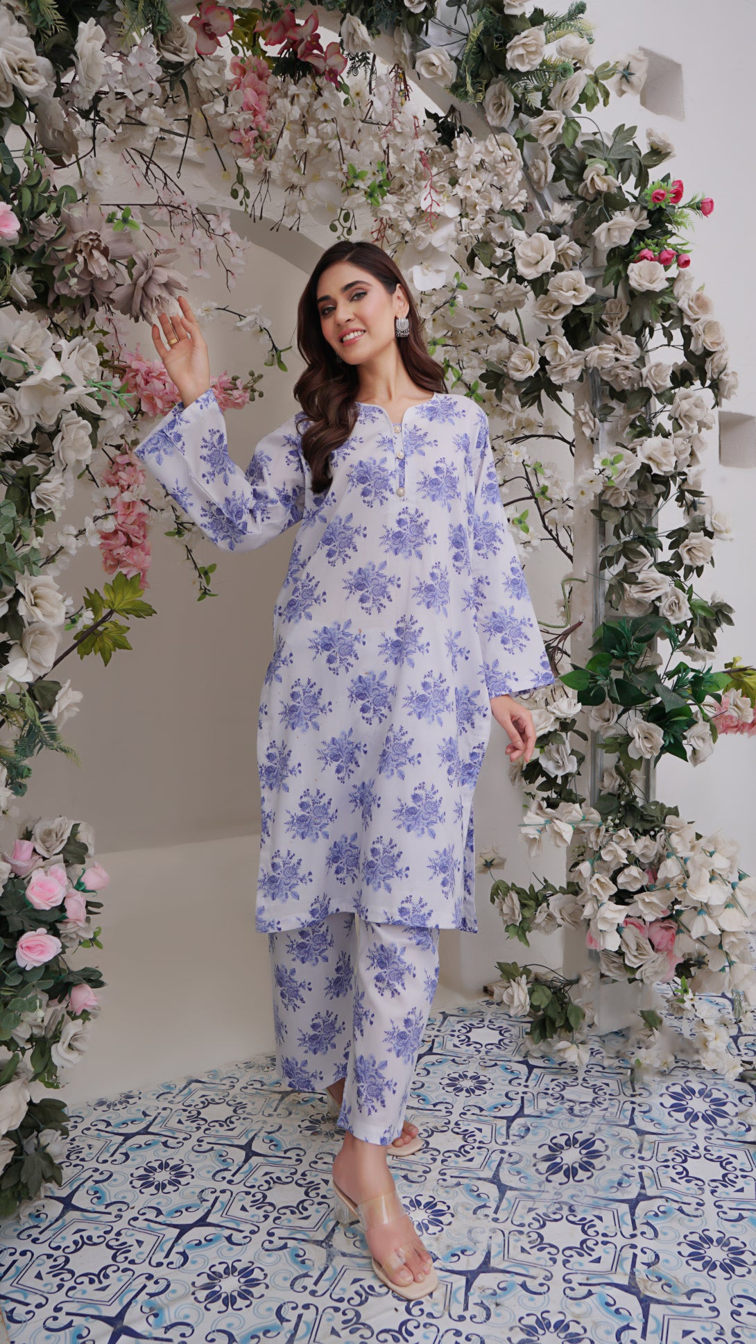 Embrace the season with this traditionally stylish stitched 2 piece cambric suit in with elegant lace work.. This elegant ensemble is paired with straight pants for a graceful look. Perfect for casual wear, it adds a touch of sophistication to your wardrobe.